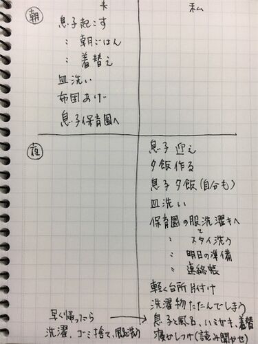 おはようございます。まだ検討中ですが、家事代行を利用したいなぁ、と考えています。選ぶ前にちょっと状況や考えを整理してみようかと。 我が家の家事分担状況 家事代行を考え始めた背景 我が家の家事分担状況 我が家の家事分担はこんな感じです。平日 「お…
